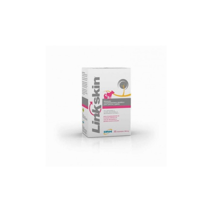 Linkskin® comprimidos, gracias a la asociación de sus ingredientes, previene y ayuda a mantener la función dérmica en caso de dermatosis y pérdida excesiva de pelo, promoviendo el equilibrio entre la microbiota cutánea e intestinal, reforzando el sistema inmune y ejerciendo una acción antioxidante. Previene y colabora en el alivio del prurito en casos de dermatosis en perros y gatos.