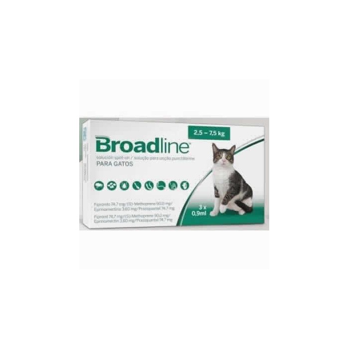 BROADLINE solución spot-on para gatos 2,5–7,5 kg. Antiparasitario Endetocida, recomendado para gato