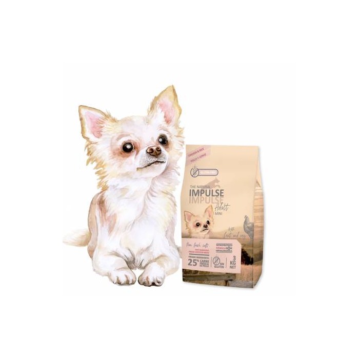 THE NATURAL IMPULSE DOG MINI ADULT es un alimento premium para perros de raza pequeña elaborado con el sistema de inyección directa de carne fresca, la tecnología más avanzada en la fabricación de alimentos para mascotas.