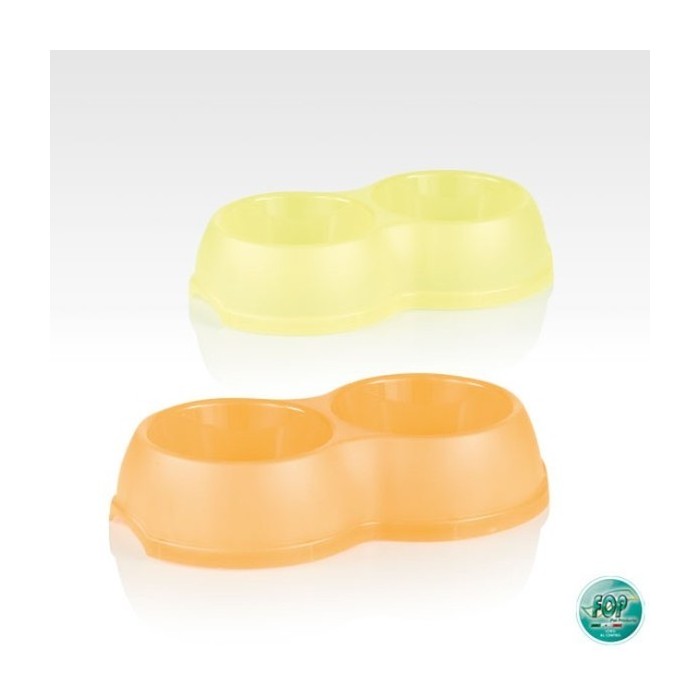 Comedero de plastico doble. Capacidad 1,2L.