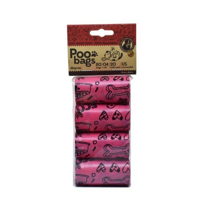 Bolsas higiénicas para recoger los desechos de perros. El pack incluye 4 rollos de 20 bolsitas reciclables cada uno