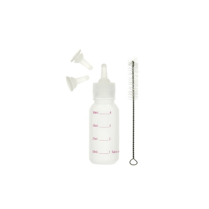 BIBERÓN DE FERRIBIELLA PARA CACHORROS FABRICADO EN PLÁSTICO CON 3 TETINAS DE SILICONA. INCLUYE UN CEPILLO PARA LIMPIARLA