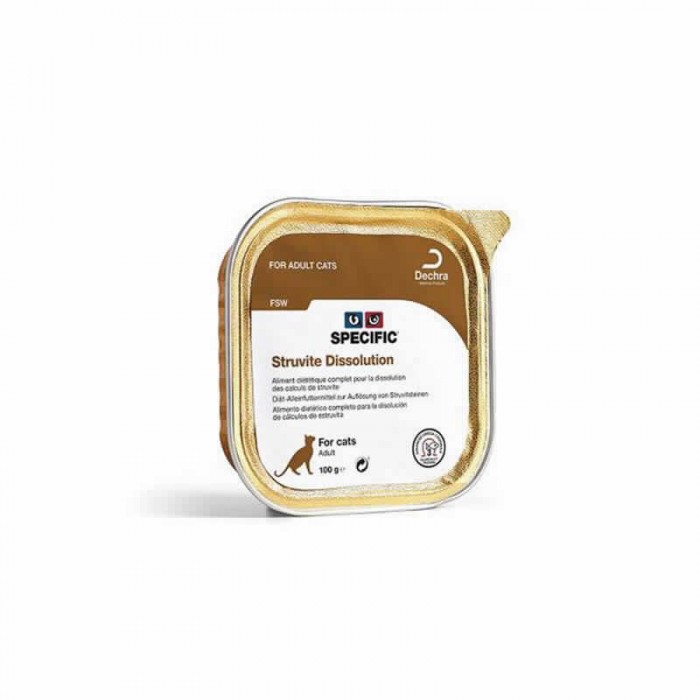 La dieta tiene un contenido reducido de magnesio y fósforo (componentes de los cristales de estruvita) para la disolución de los cálculos de estruvita y prevenir su reaparición.