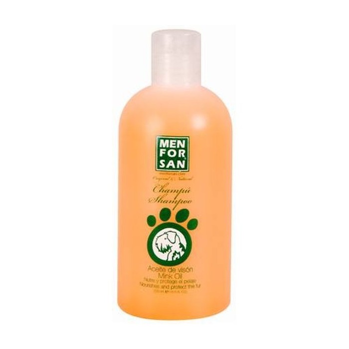 Champú de máxima calidad con ACEITE DE VISON que protege y nutre el pelaje. El aceite de visón aporta alta hidratación en pelajes secos. Evita o corrige el desequilibrio nutricional que origina el pelo seco, rígido, mate o demasiado fino, que se rompe o anuda. Tiene un alto poder penetrante y por su riqueza en ácidos grasos esenciales fortalece las fibras queratinitas del cabello restaurando su vitalidad flexibilidad y brillo. Ideal para un uso frecuente en razas de pelo largo como Yorkshires, Afgano, Maltés, Lhasa Apso, y Setters. Ph balanceado